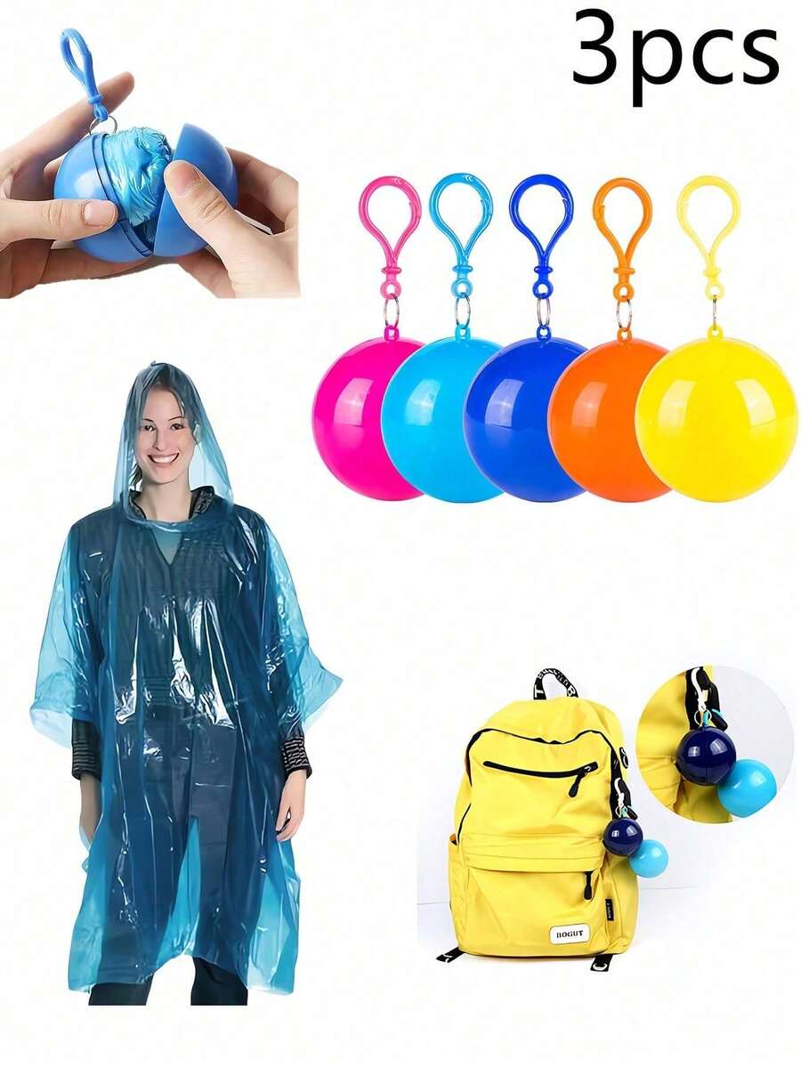 1/3/5/8 قطعة معطف مطر محمول بشكل كرة، معاطف مطر يُستخدم مرة واحدة محمولة مع علبة تخزين بشكل كرة، معطف مطر طارئ مقاوم للماء محمول، سلسلة مفاتيح للتخييم/المشي/السفر - تصميم كرة مضغوطة، معطف مطر بلاستيكي خفيف الوزن للجنسين، يمكن تعليقه على الحقيبة الظهرية، مستلزمات سفر قابلة للتخلص منها، مستلزمات خارجية ضرورية