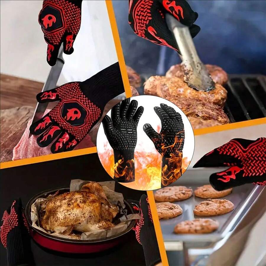 قطعة واحدة من قفازات الشواء المقاومة للحرارة والنار من السيليكون، قفازات الطبخ في المطبخ، مقاومة للانزلاق والتآكل، سهلة التنظيف، مناسبة للشواء والطهي والخبز والتخييم - مقاومة درجات الحرارة العالية، قفازات متعددة الاستخدامات للخارج