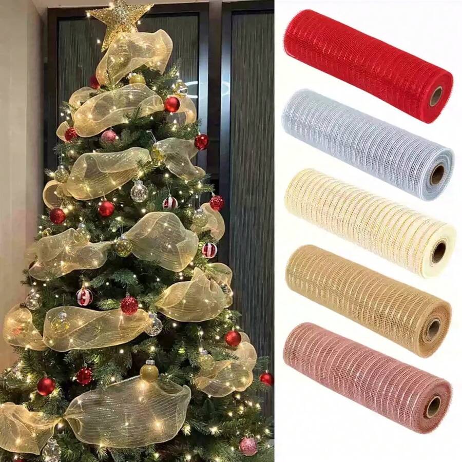 لفة شريط شبكي لتزيين شجرة الميلاد، شبكة بيضاء للديكور، شبكة توليل ذهبية، شبكة ديكورية للأعياد، لفة شريط شبكي أساسي بخطوط بيضاء 10 ياردات شريط شبكي أبيض لشجرة الميلاد، لصنع الفيونكات، تغليف الهدايا، ديكور الحفلات والزفاف، مناسب للشجرة والإكليل والإكساء الشبكي لديكورات الميلاد والشتاء في المنزل وهدايا الميلاد وديكورات الميلاد
