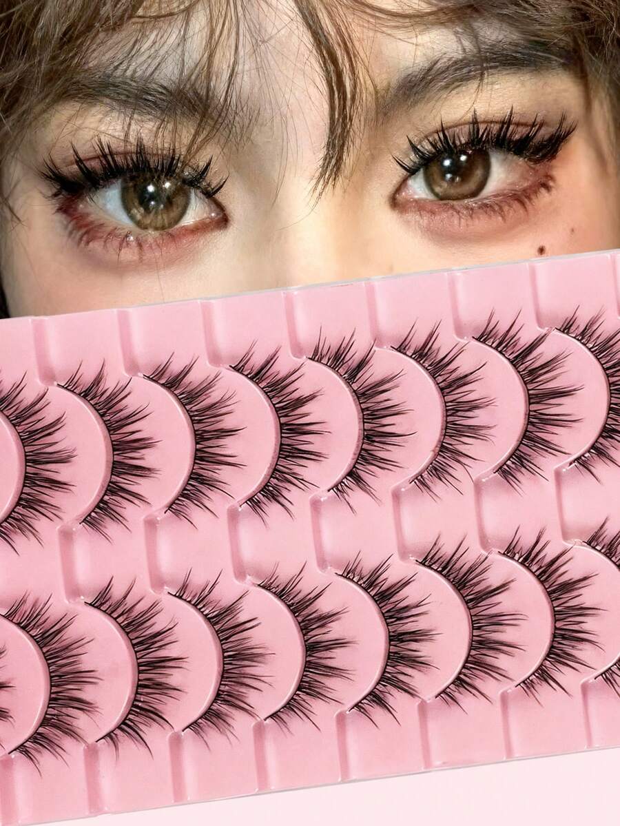10 أزواج من رموش المانجا ذات الشريط الأسود، رموش مستعارة طبيعية متشابكة ناعمة، مثالية للتنكر والتمثيل، قابلة لإعادة الاستخدام