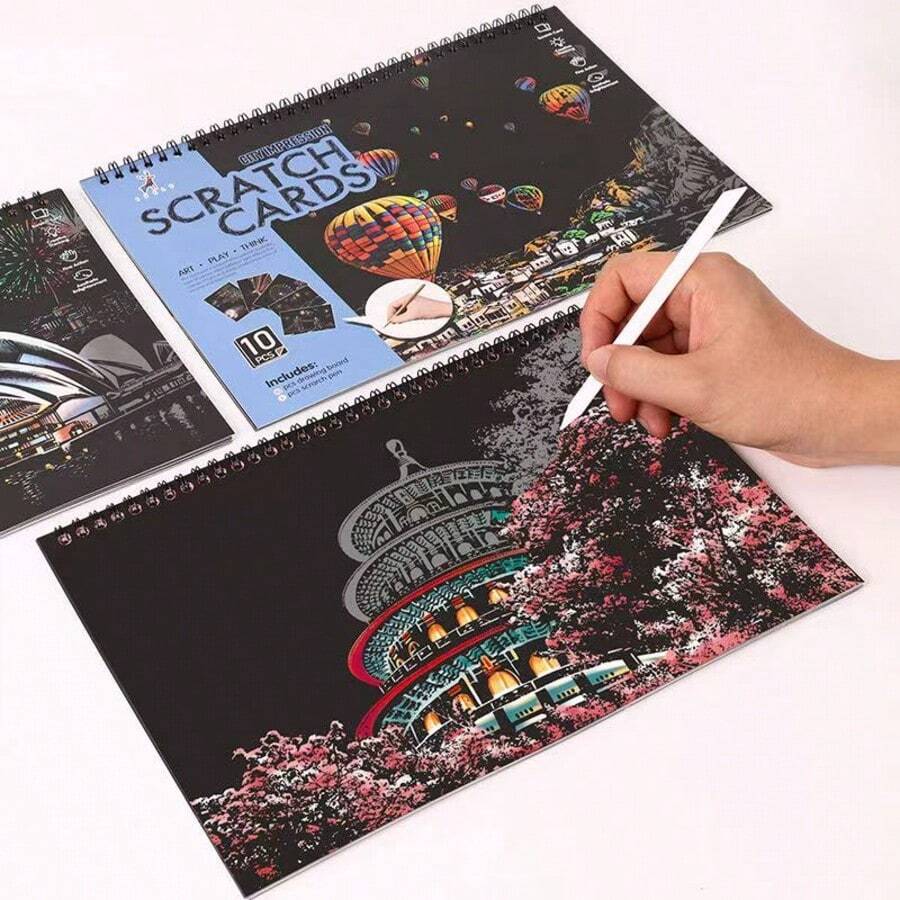 10 قطع/طقم بطاقات خدش فنية للمناظر الحضرية ، لوحات فنية للخدش للبالغين بألوان زاهية ، هدايا لحفلات، العودة إلى المدرسة ، لوازم المدرسة