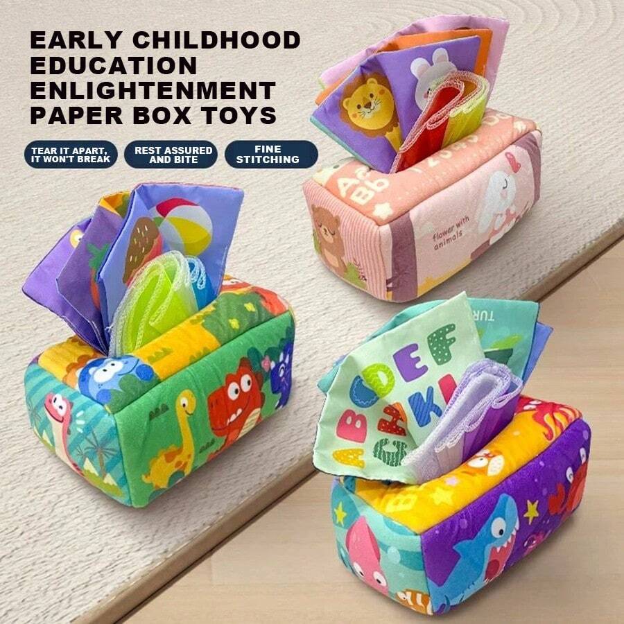 10 قطعة/مجموعة لعبة صندوق مناديل - تصميم مونتيسوري لعبة حسية مع حشوة ناعمة، أوشحة حريرية قابلة لإعادة الاستخدام ، أصوات تقشعر لها الأبدان ، تشجع المهارات الحركية الدقيقة ، لعبة تعليمية مبكرة هدية للأطفال من 6 إلى 12 شهرًا ، الأولاد والبنات (ألوان ملحقات عشوائية)