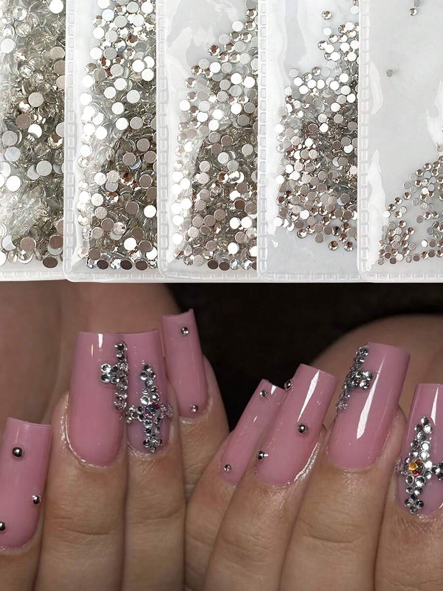 1440 قطعة مسامير بيضاء مسطحة القاع للتزيين متعددة الأغراض DIY لتخصيص ديكور الأظافر وأغطية الهواتف والملابس والمكياج وزجاجات المياه والترصيع