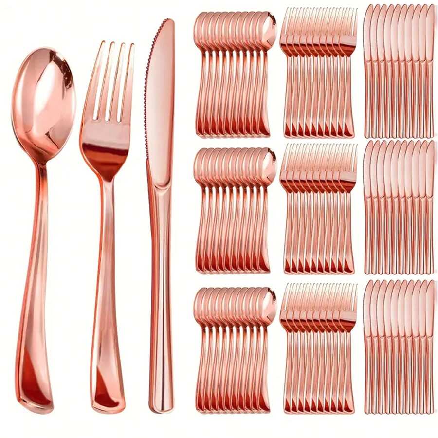 مجموعة أدوات المائدة بلون الذهب الوردي 150/75/50/30/25/15/10/2 قطعة، شوك السلطة وملاعق، مناسبة للكيك والحلويات والسلطات والبرغر، رائعة لحفلات عيد الميلاد والأعراس والمطاعم والحفلات المناسبات، ديكور عيد الميلاد وعيد الشكر والسنة الجديدة