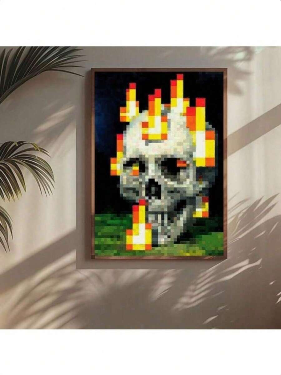 1 لوحة جمجمة ملتهبة بتصميم بكسل مجرد بدون إطار، ديكور فني، لوحة جدارية فنية، هدايا، غرف النوم، المكاتب، غرف المعيشة، المقاهي، ديكور الجدران، ديكور المنزل والسكن الجامعي، هدية مثالية للأصدقاء والعائلة، عيد الحب، رأس السنة، منزل جديد - بدون إطار
