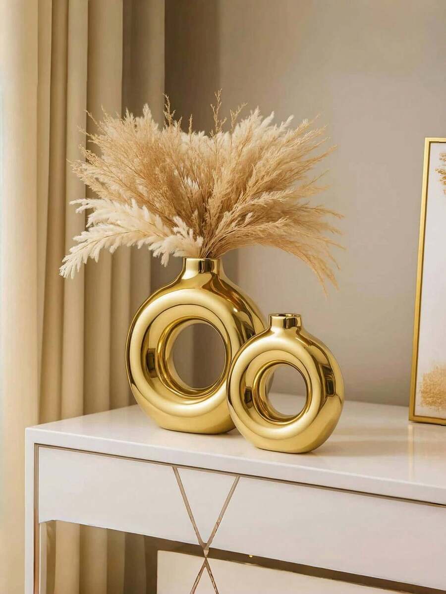 1 قطعة، خيارين للحجم، إناء سيراميك على شكل دونات ذهبي لامع، مناسب لديكور المنزل، ديكور طاولة حديث بسيط، حفل زفاف، غرفة المعيشة، رف الكتب، المكتب، مدخل المنزل، هدية عيد ميلاد، هدية عيد الميلاد، أفضل ديكور غرفة إناء زجاجي