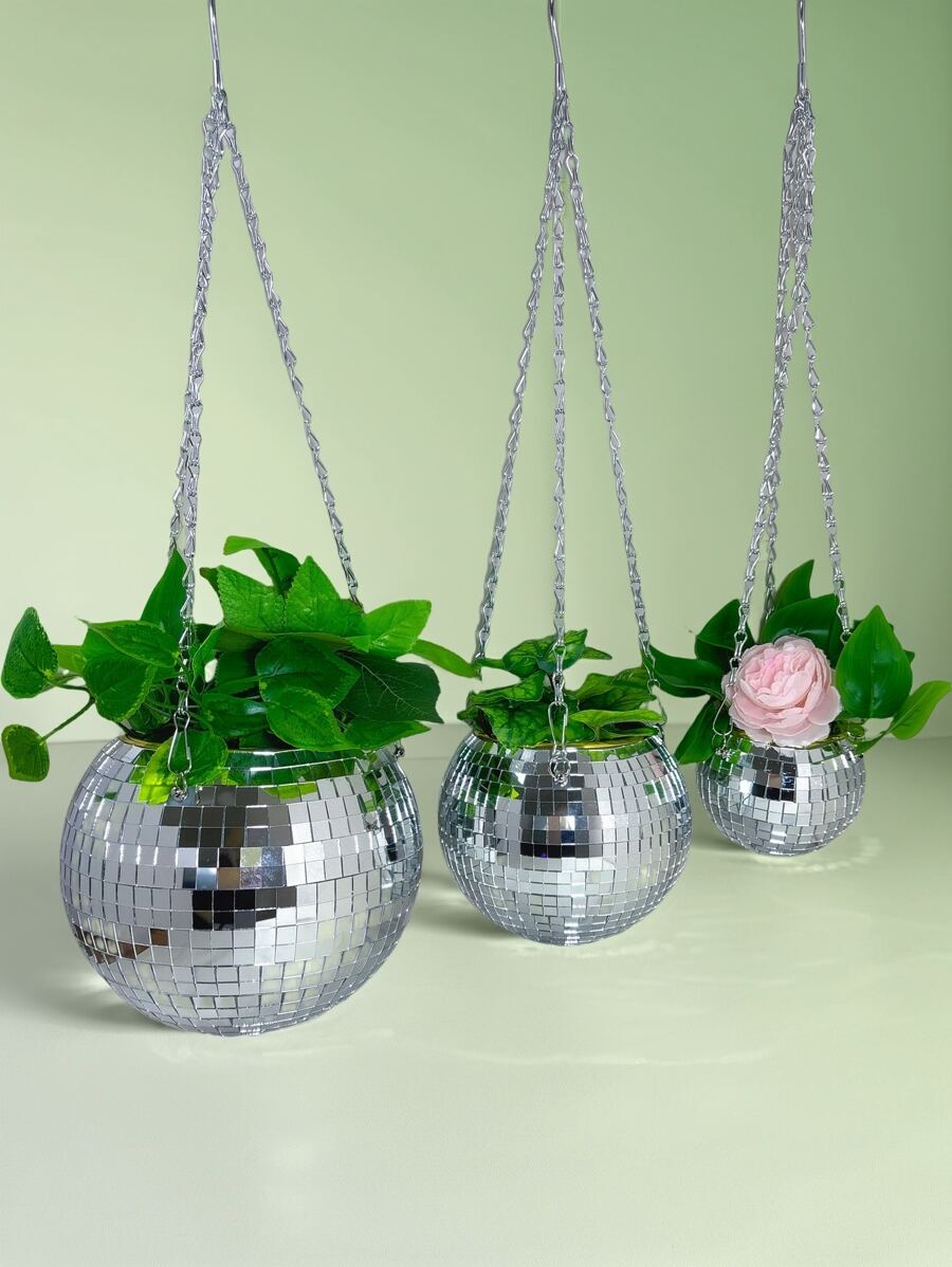 • قطعة واحدة كرة مرقصة فضية بحجم 4 / 6 / 8 بوصة مع سلاسل ، صنع يدوي من سطح مرآة زجاجية، مناسبة للحديقة الخارجية والمكتب والمنزل ، تشكيلة ديكورية