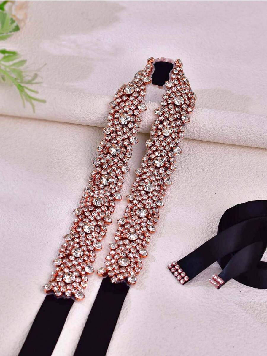1 قطعة حزام خصر طويل مرصع بالكريستال الكامل، اكسسوار فستان رسمي بلون الذهب الوردي، شريط أسود رسمي لحفلات المساء والعشاء للنساء، اكسسوارات عيد الحب