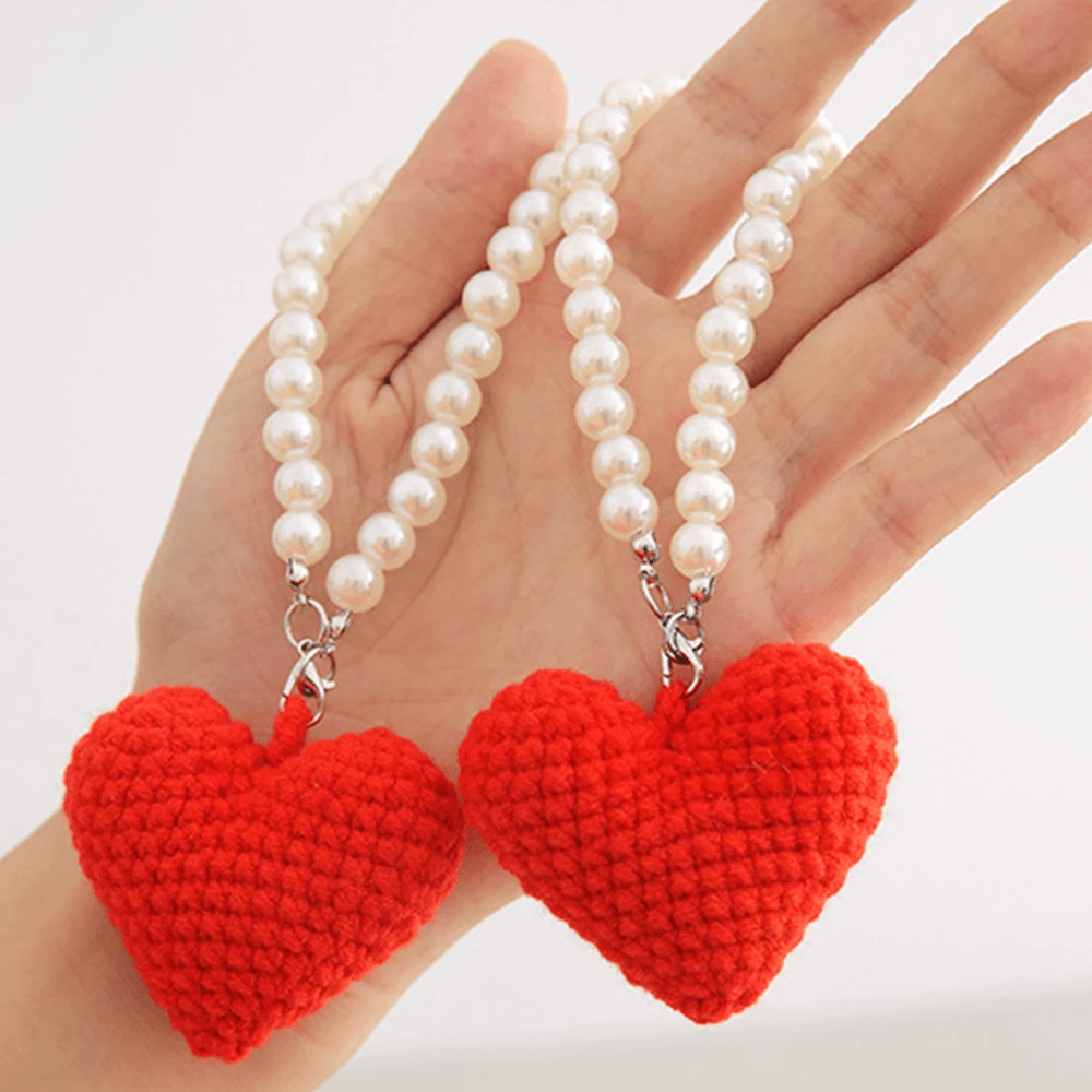1 قطعة سلسلة مفاتيح قلب مصنوعة يدويًا بالكروشيه، ديكور معلق مصنوع بالتريكو، إكسسوار للحقيبة/الهاتف