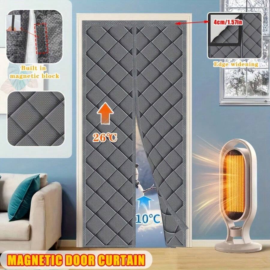 ستارة باب عازلة للحرارة مغناطيسية - قماش أكسفورد ثقيل، بطانة مسمكة، زيادة في الارتفاع بمقدار 2 بوصة، مناسبة لأبواب زجاجية انزلاقية بعرض 80-120 سم، تحافظ على الدفء وتقلل الضوضاء في الشتاء، رمادي، ستارة باب شتوية، عزل باب انزلاقي، سطح منسوج، بنية متينة، عزل المنزل، تصميم، خياطة مقواة، حل عزل المنزل