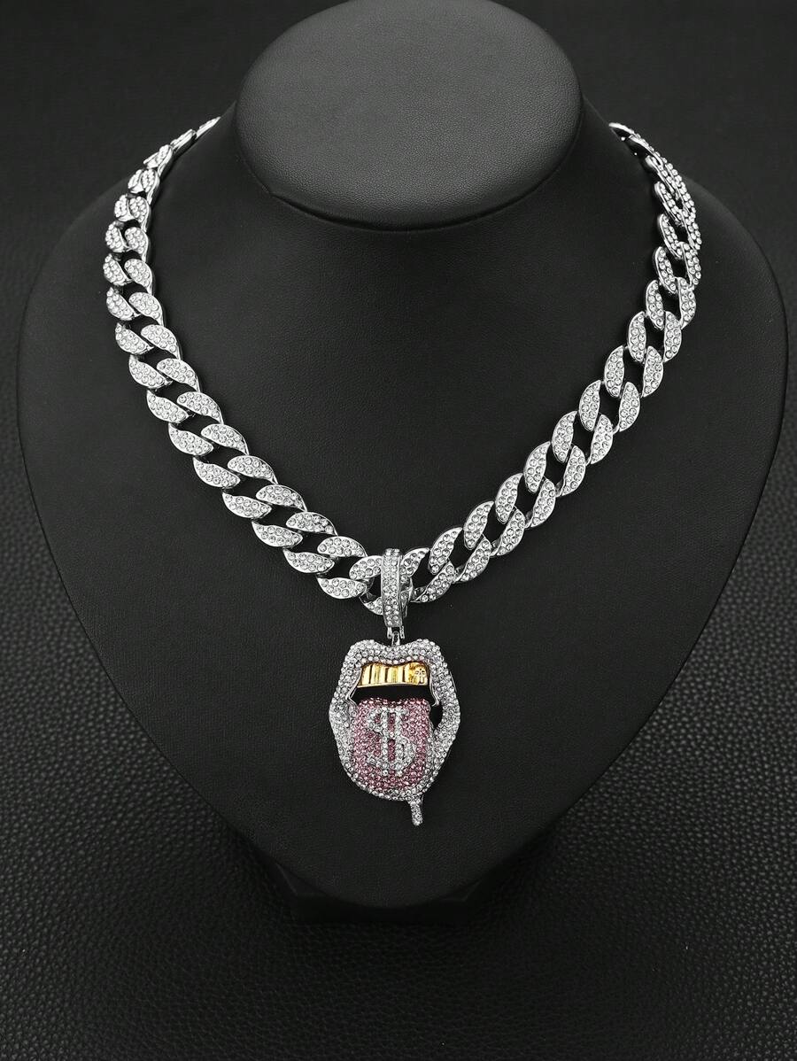قلادة متدلية للرجال سبيكة شفاه شكل مع بديكور حجر الراين , هيب هوب أسلوب سلسلة الى ملابس يومية قطعة واحدة