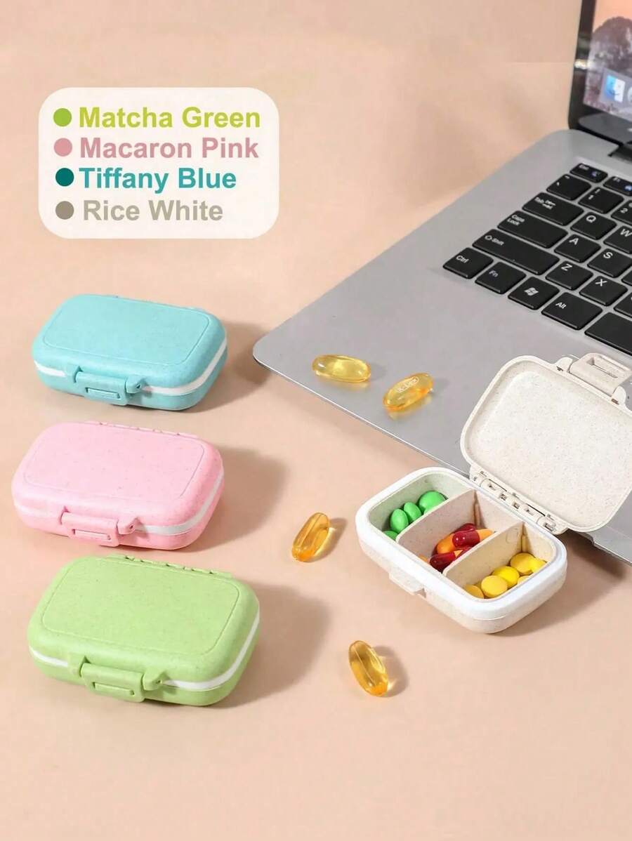 1 علبة أقراص صغيرة محمولة - علبة أقراص ذات 3 حجرات، حاوية تخزين أقراص، علبة أقراص أسبوعية، منظم أقراص، علبة أقراص من قش القمح، مناسبة للسفر والمنزل والتخييم وصندوق الإسعافات الأولية وحقيبة الأدوية، ضروريات السفر والعطلات والعودة إلى المدرسة، منظم الأدوية، حقيبة الطوارئ للمدرسة وحقيبة الإسعافات الأولية للخارج