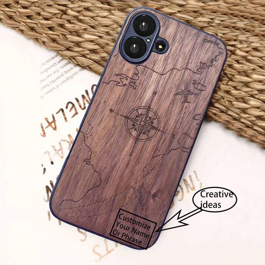 1 قطعة من غلاف الهاتف مصمم على شكل بوصلة طائرة خشبية طبيعية، قابل للتخصيص بشعار أو عبارة منقوشة، متوافق مع هواتف أبل، غلاف هاتف محفور خشبي، هدية مناسبة للأولاد والبنات والزوج والزوجة