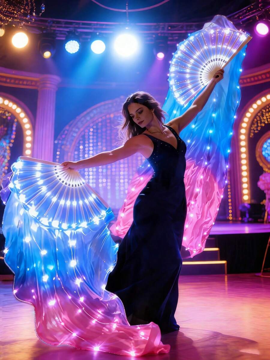 1 قطعة مروحة إضاءة LED وامضة للكبار، طول 1.5 متر، تدرج لوني من البنفسجي إلى الأبيض، خط إضاءة ناعم، مناسبة لرقص البطن والأداء على المكتب وغيرها من المناسبات، لا تحتاج إلى بطاريتي AAA، مناسبة للعطلات والعروض المسرحية والحفلات والأعراس وعيد الهالوين وعيد الميلاد وغيرها من المناسبات