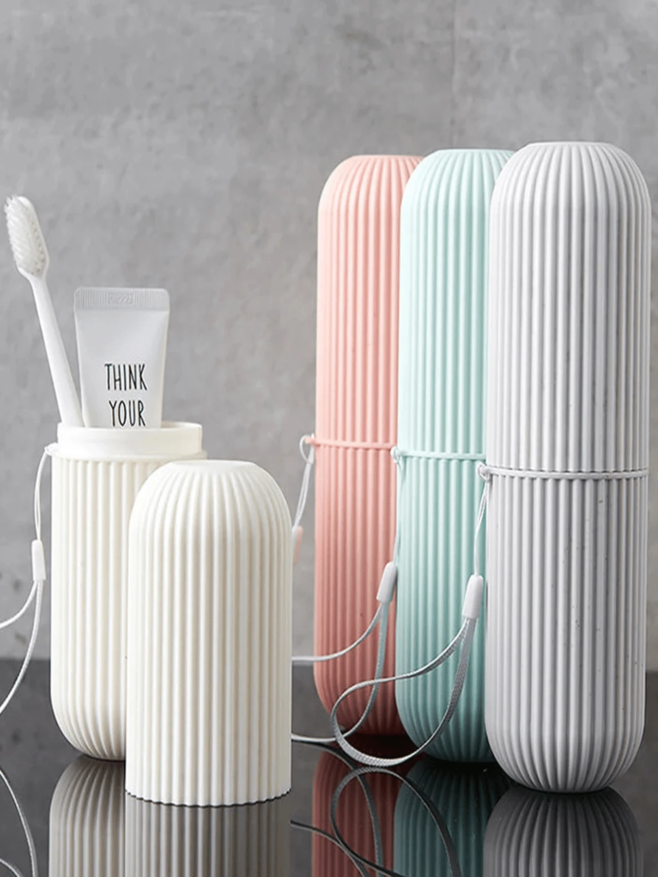 1 قطعة حافظة أسنان محمولة للسفر مع كوب شطف - تصميم مدمج وموفر للمساحة، تصميم صحي، مناسب للسفر العمل، الضروريات السفرية، إكسسوارات الحمام، سهلة التنظيف والتخزين