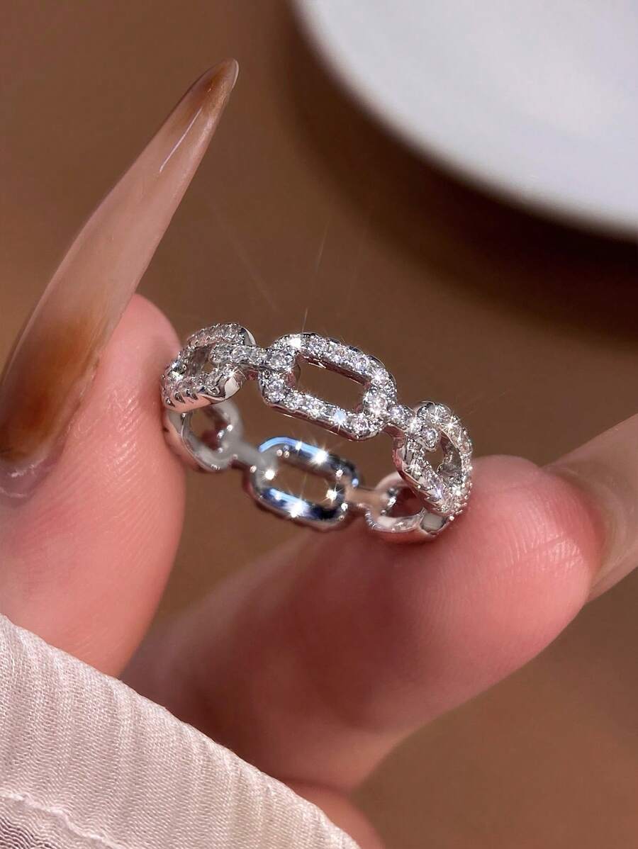 قطعة واحدة خاتم سلسلة مرصع بالراين من الفضة الإسترليني عيار 925، مجوهرات رقيقة هدية للنساء