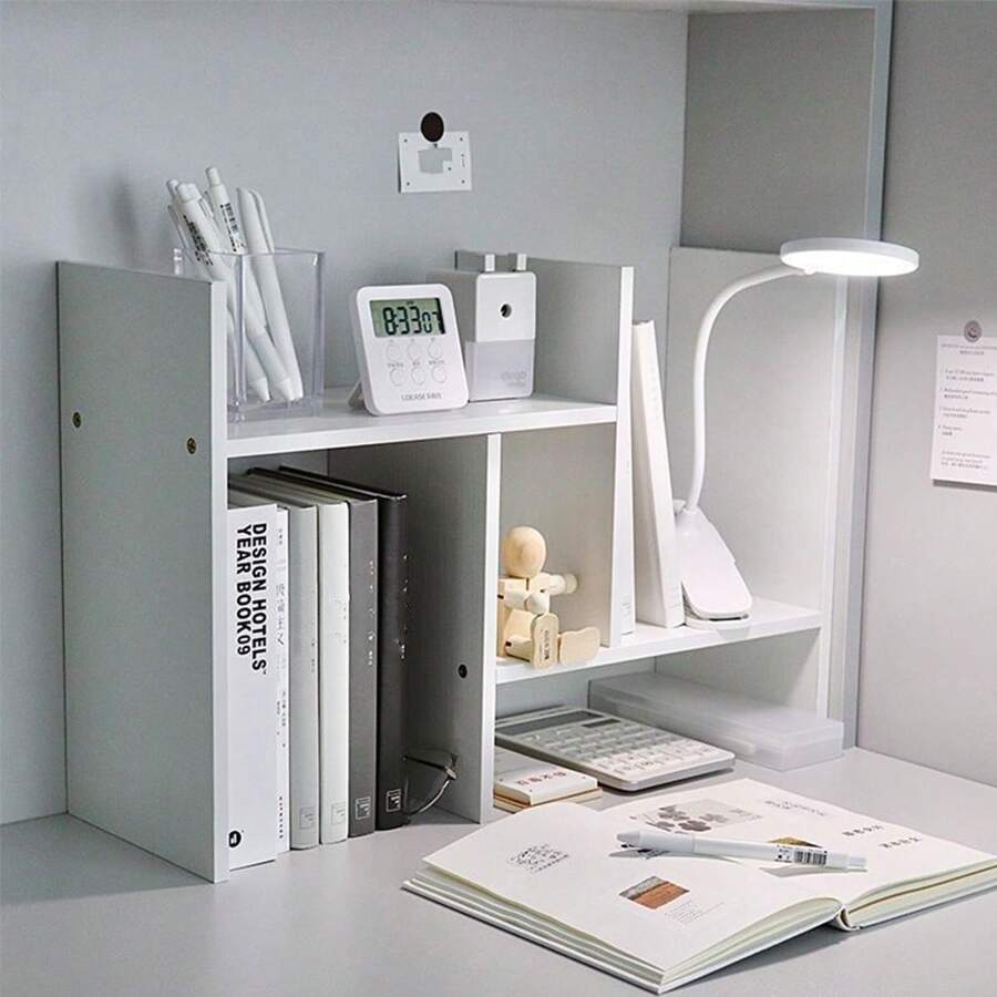 رف تخزين بسيط للمكتب في غرفة المعيشة قطعة واحدة، رف كتب خشبي أبيض بسيط، خزانة طاولة مبتكرة