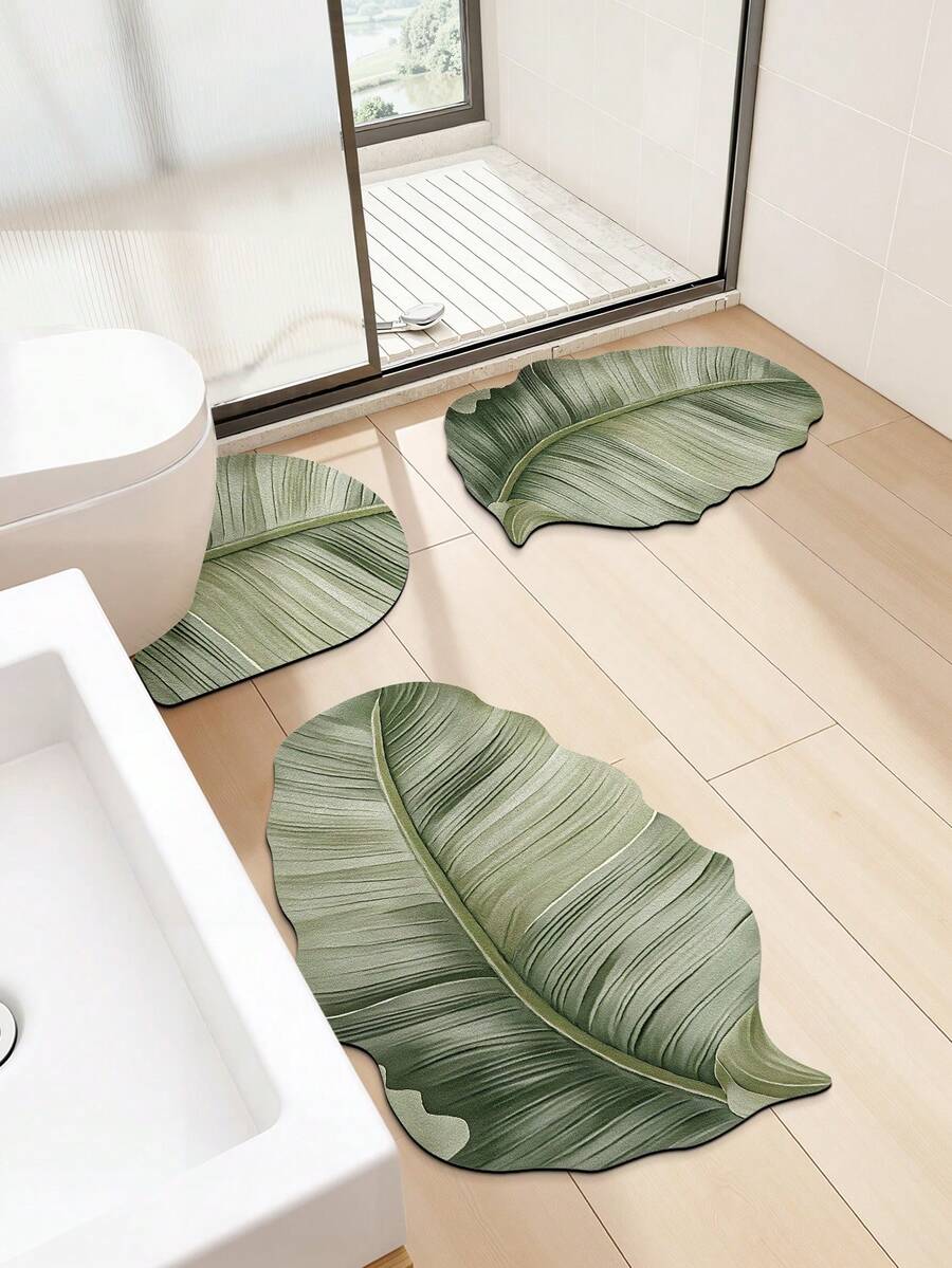 DAJIANG 1 قطعة سجادة حمام بشكل ورقة الموز الاستوائية، ذات ملمس مُنقَّط بتدرج أخضر، ماصة وغير انزلاقية، مناسبة للحمام والمطبخ والخارج والداخل والممر والغرفة والصالة، قابلة للغسل في الغسالة، قاعدة مانعة للانزلاق، سهلة التنظيف