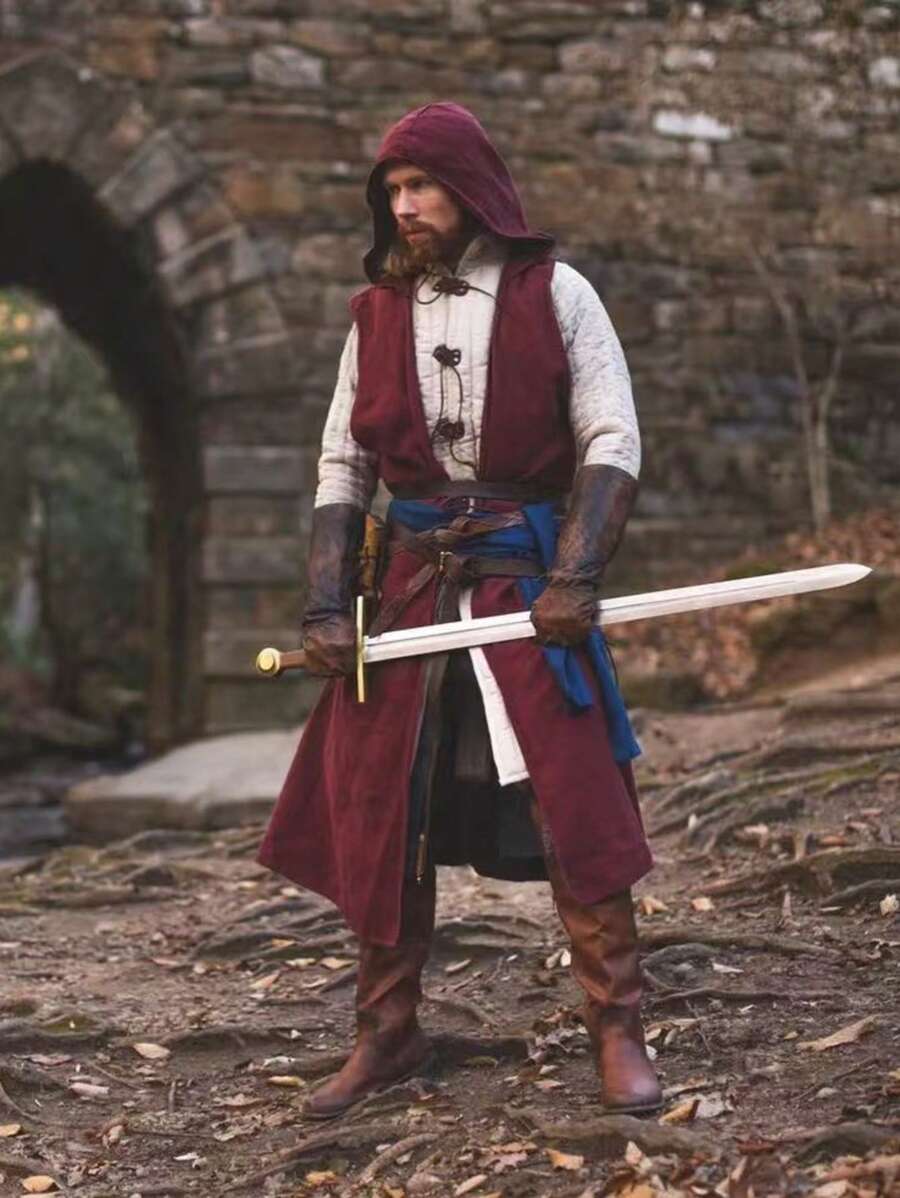 1 قطعة رداء طويل ذو غطاء أمامي مفتوح بطراز عتيق وسط العصور الوسطى، باللون الأحمر أو الأسود أو الأخضر، مناسب لحفلات الهالوين والكرنفالات والأعياد والأزياء المسرحية وتنكر فايكنج