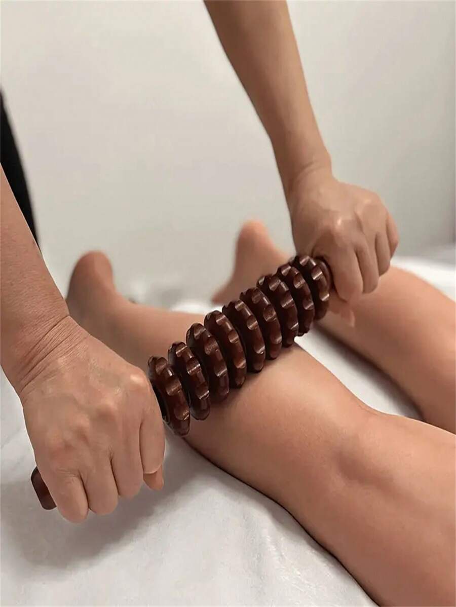 قطعة واحدة من دافع التدليك الخشبي مع مقابض مضادة للانزلاق وعجلات مؤشرة- مصمم لعشاق اللياقة البدنية لاستهداف الذراعين والساقين والأفخاذ والأرداف والظهر، ملحقات صالة الألعاب الرياضية