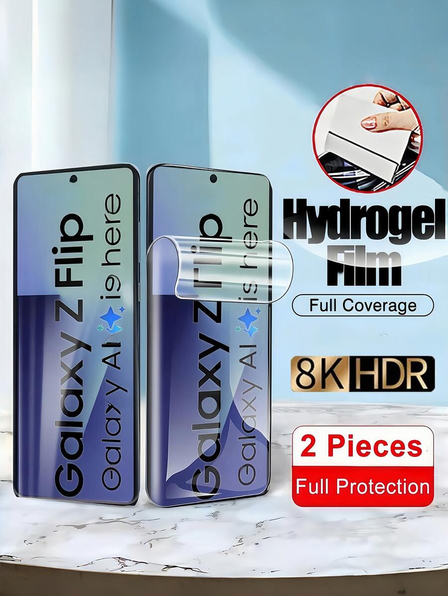 قطعتان من أغشية الهيدروجيل عالية الوضوح لحماية شاشة هاتف سامسونج جالاكسي زد فليب 7/6/5/4/3، تحمي الشاشة من الخدوش وتقوم بإصلاحها تلقائيًا (ليست من الزجاج المقسى)، سلسة وناعمة اللمس، مقاومة للخدوش والأتربة والماء وبصمات الأصابع