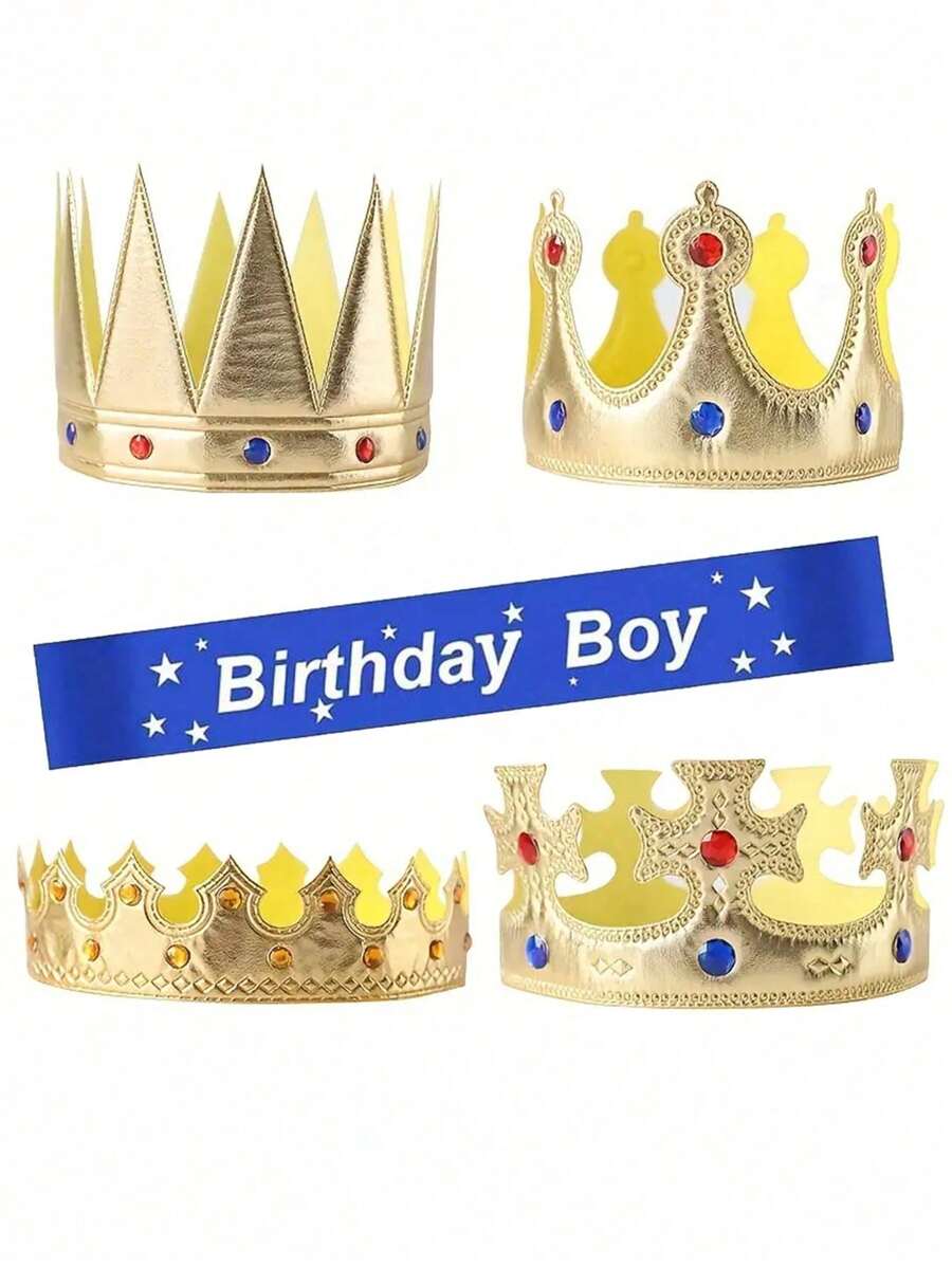 👑 تاج ذهبي للبالغين، قطعة رأس للأمير مرصعة بالراين ، ديكور كيك، تاج لحفلة عيد الميلاد، هدية للأم في عيد الحب، عيد الأم، قطعتان/قطعة