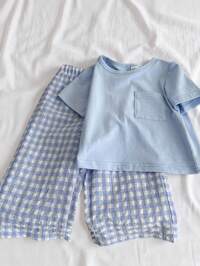 في أزرق طفل الأولاد تي شيرت Co-ords