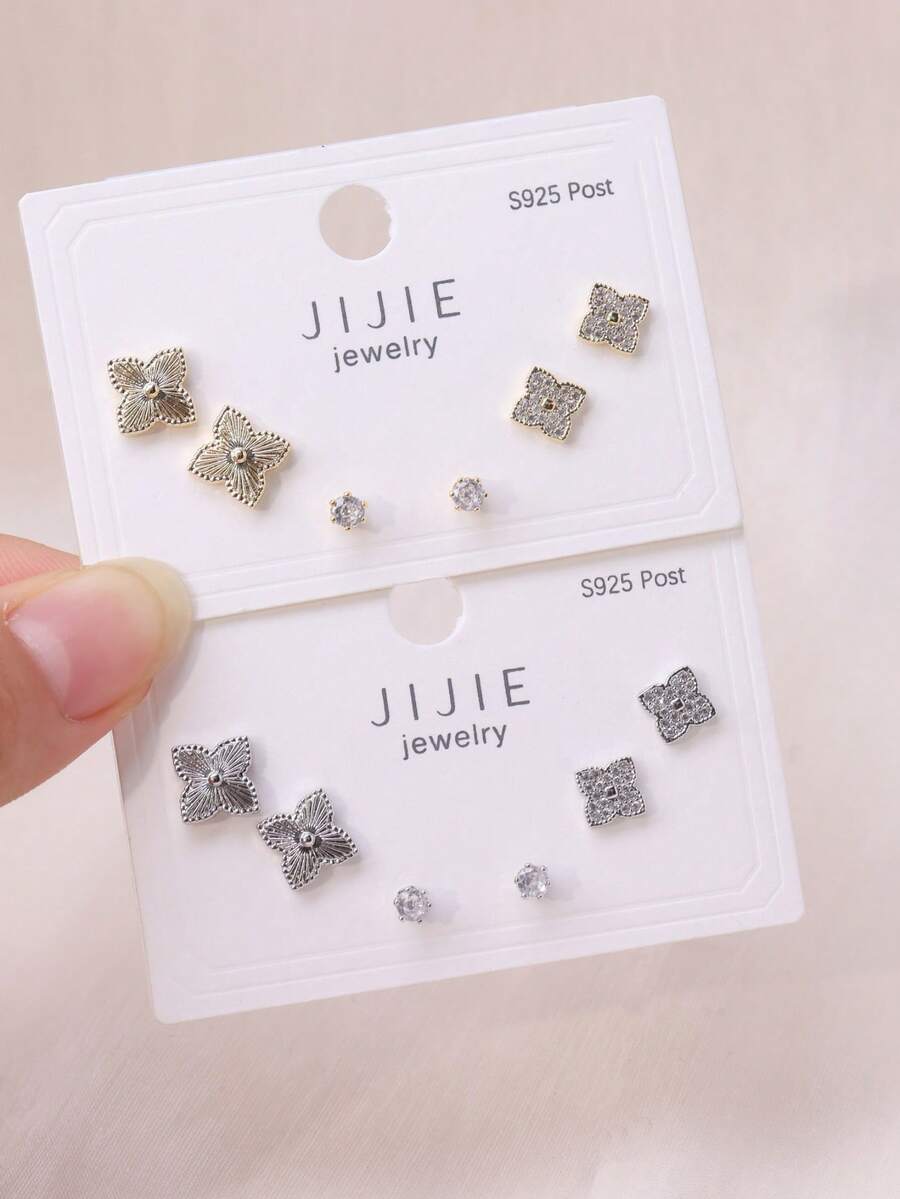 3 أزواج من أقراط الأزرار البسيطة الأنيقة الصغيرة الجميلة ذات 4 بتلات على شكل زهرة للنساء