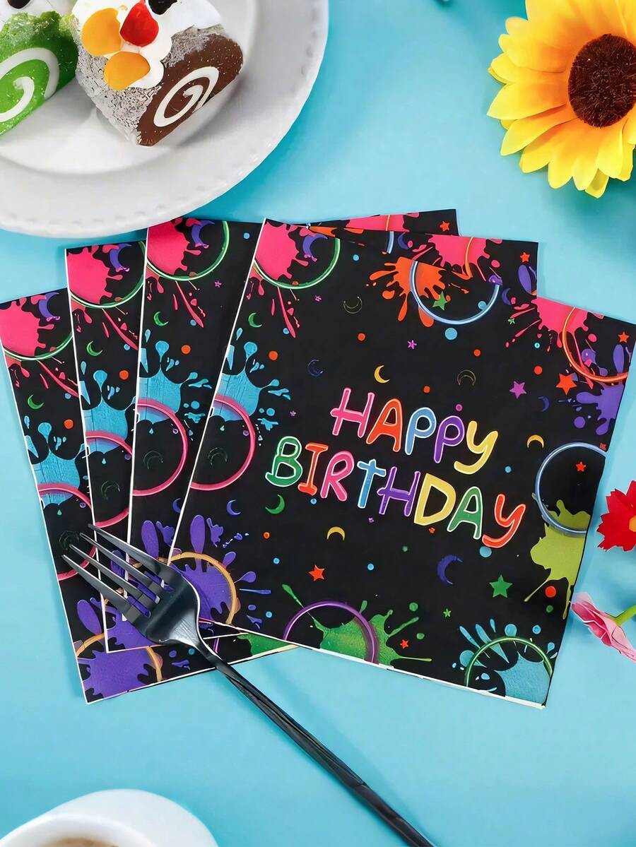 مناديل ورقية قابلة للتخلص منها بمقاس 33 * 33 سم، خلفية سوداء مع حلقات ملونة ورسومات تخطيطية، مناديل فلورية للحفلات وحفلات الرسم، "هيا نتألق"، مناسبة لحفلات عيد الميلاد والكريسماس