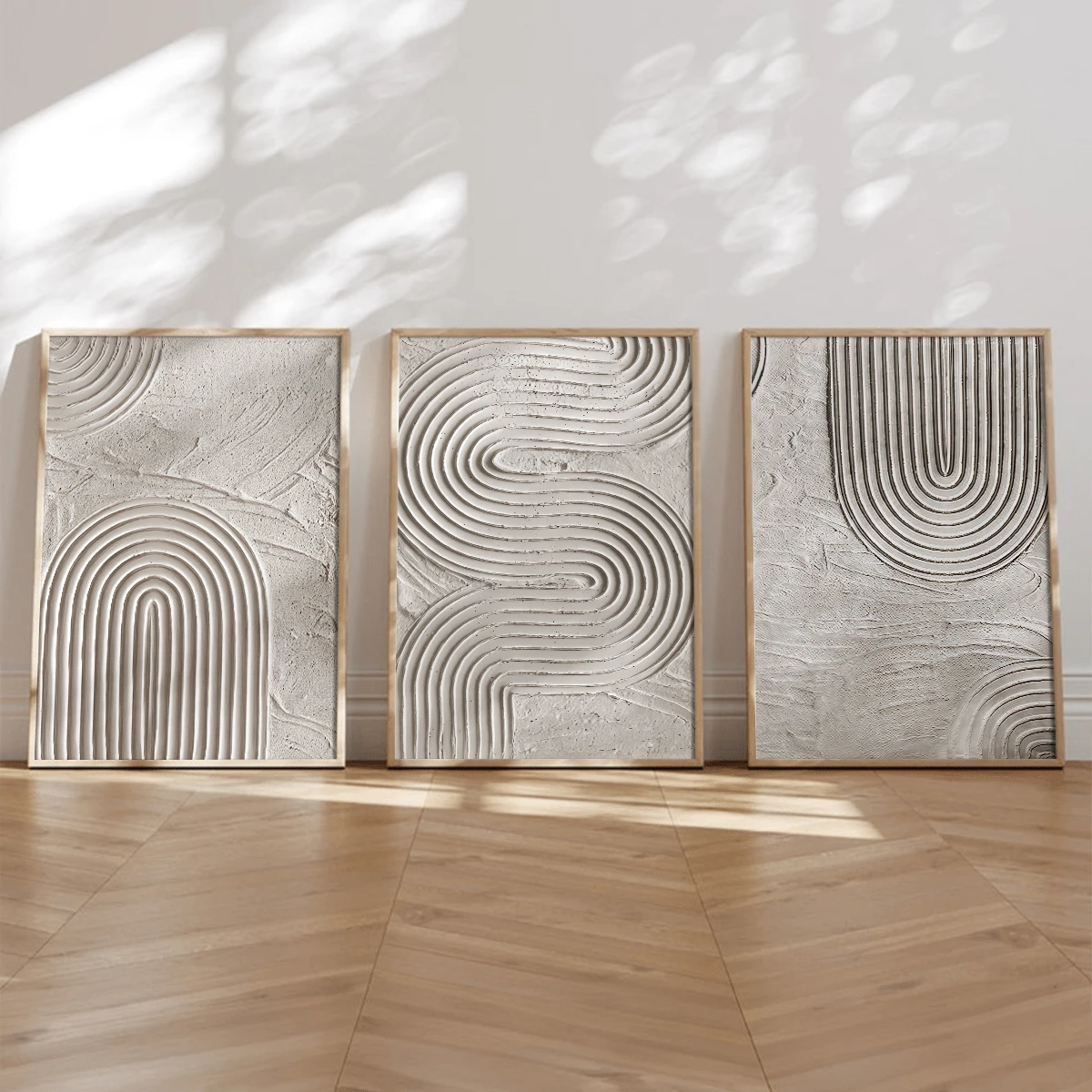3 قطع / مجموعة لوحة فنية حديثة، مجموعة فن قماشي مجرد - ديكور جداري أنيق باللون الأبيض والرمادي، درجات لونية أرضية، محايد، فن زن، خطوط هندسية، ريفي، أسلوب حديقة زن، مؤطر أو غير مؤطر، ديكور غرفة، ديكور المنزل، ديكور شقة الطالب الجامعي، هدايا لديكور الجدران في الفندق، المنزل، غرفة المعيشة، غرفة النوم، الحمام والمكتب