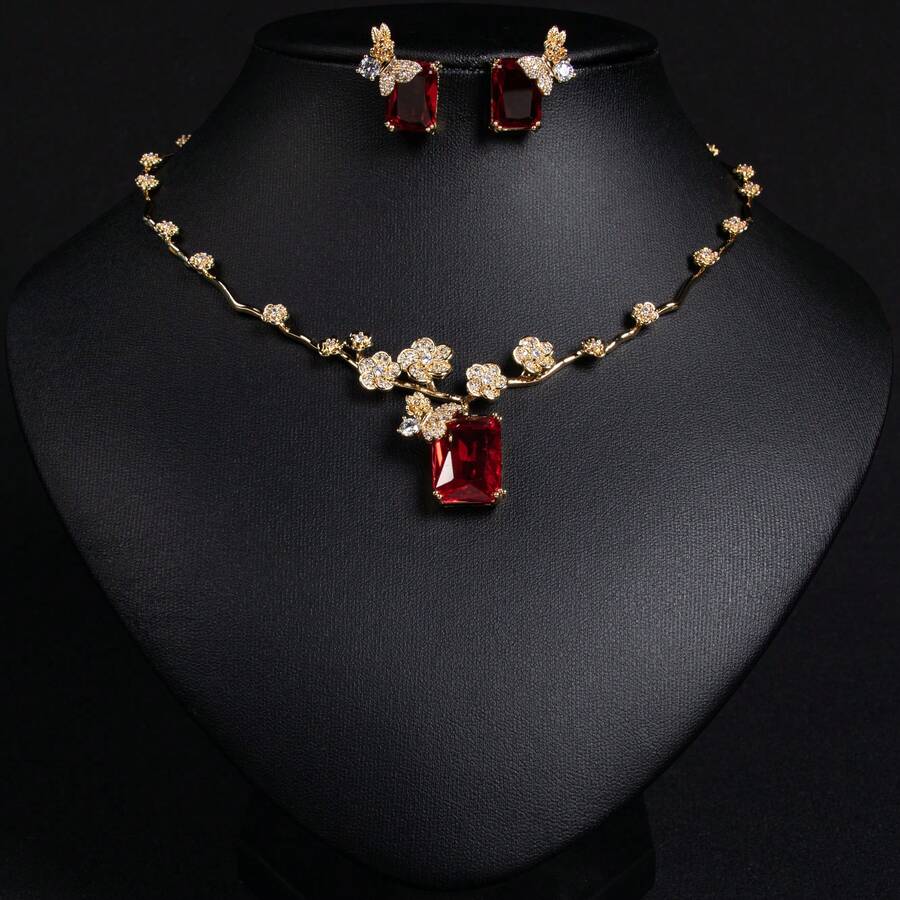 مجموعة مجوهرات مكونة من 3 قطع بشكل زهرة من الزركونيا المكعبة، خيارات اللون الذهبي/الفضي، طقم قلادة وأقراط، مناسب لارتداء المرأة في المناسبات والحفلات والولائم، مجموعة هدايا مجوهرات عصرية