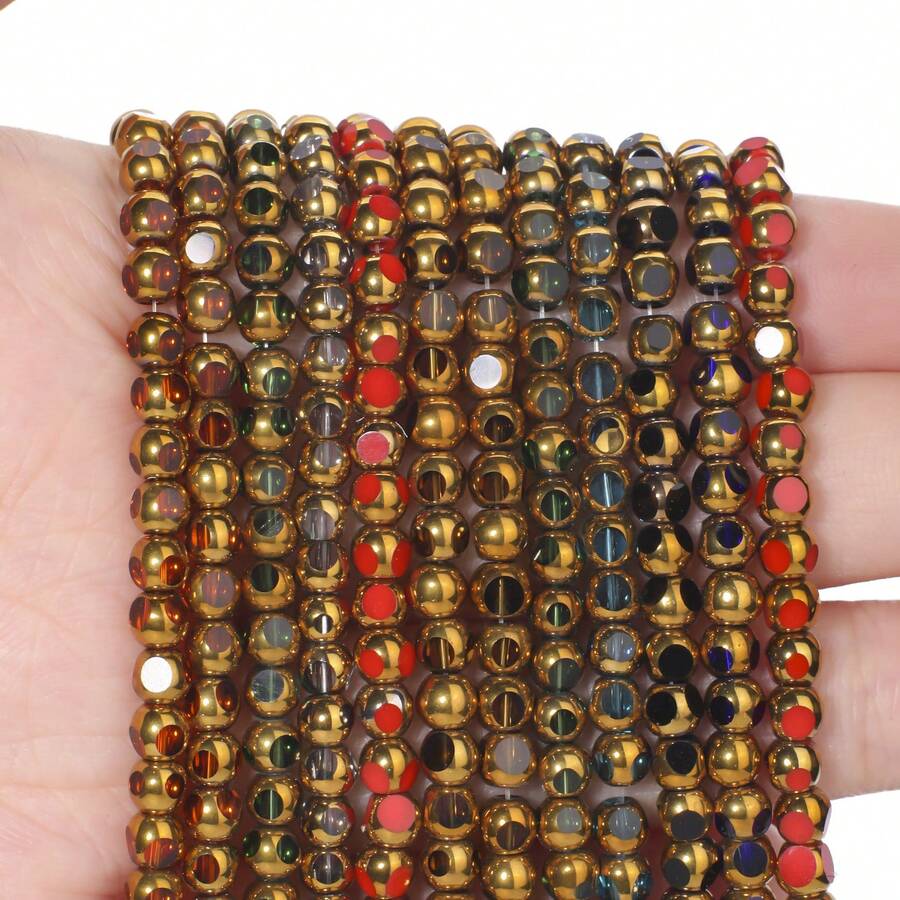 خرز زجاجي كريستالي دائري بقطر 4 مم ذهبي متعدد الوجوه فضفاض للتباعد لصنع الأصداف والأساور والقلائد والمجوهرات DIY
