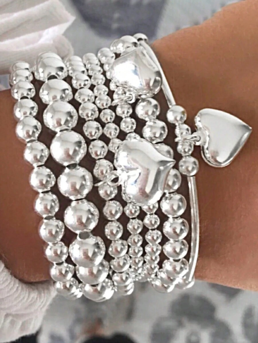 7 قطع مجموعة أساور مزينة بقلوب من الخرز، مناسبة للنساء في المناسبات والأعياد والمواعيد والحفلات اليومية، تتناسب مع عيد الحب