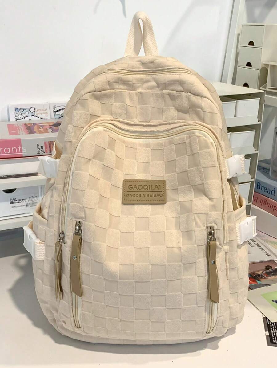 حقيبة ظهر رجالية كاجوال خفيفة الوزن ذات لون أحادي وبنمط مربعات، سعة كبيرة متعددة الاستخدامات، حقيبة ظهر للكمبيوتر بتصميم بسيط، حقيبة ظهر للسفر والتنقل، حقيبة مدرسية