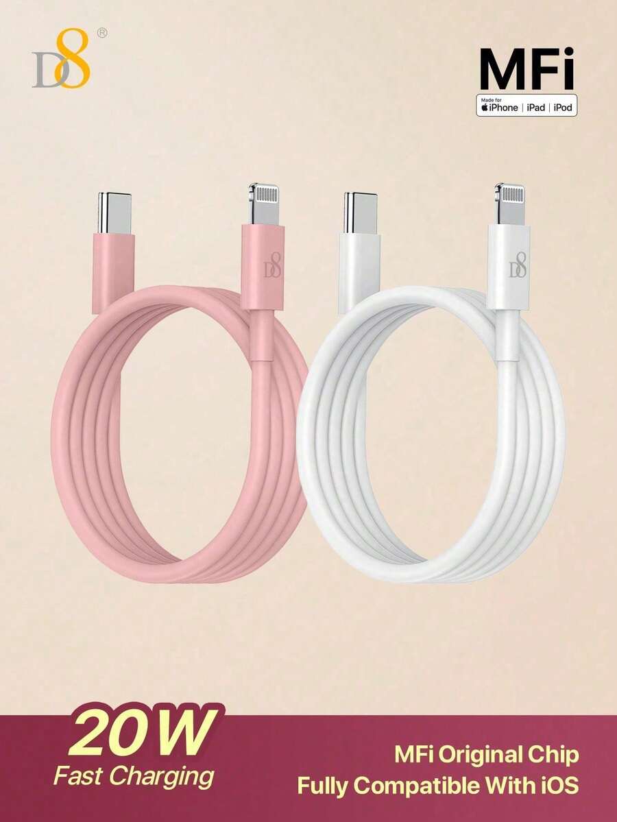 كابلا شحن من USB-C إلى Lightning، معتمدان من MFi، من مادة TPE (1 متر، 3.3 قدم)، يدعم شحن سريع بقوة USB 2.0 PD، عبوة 2 قطعة