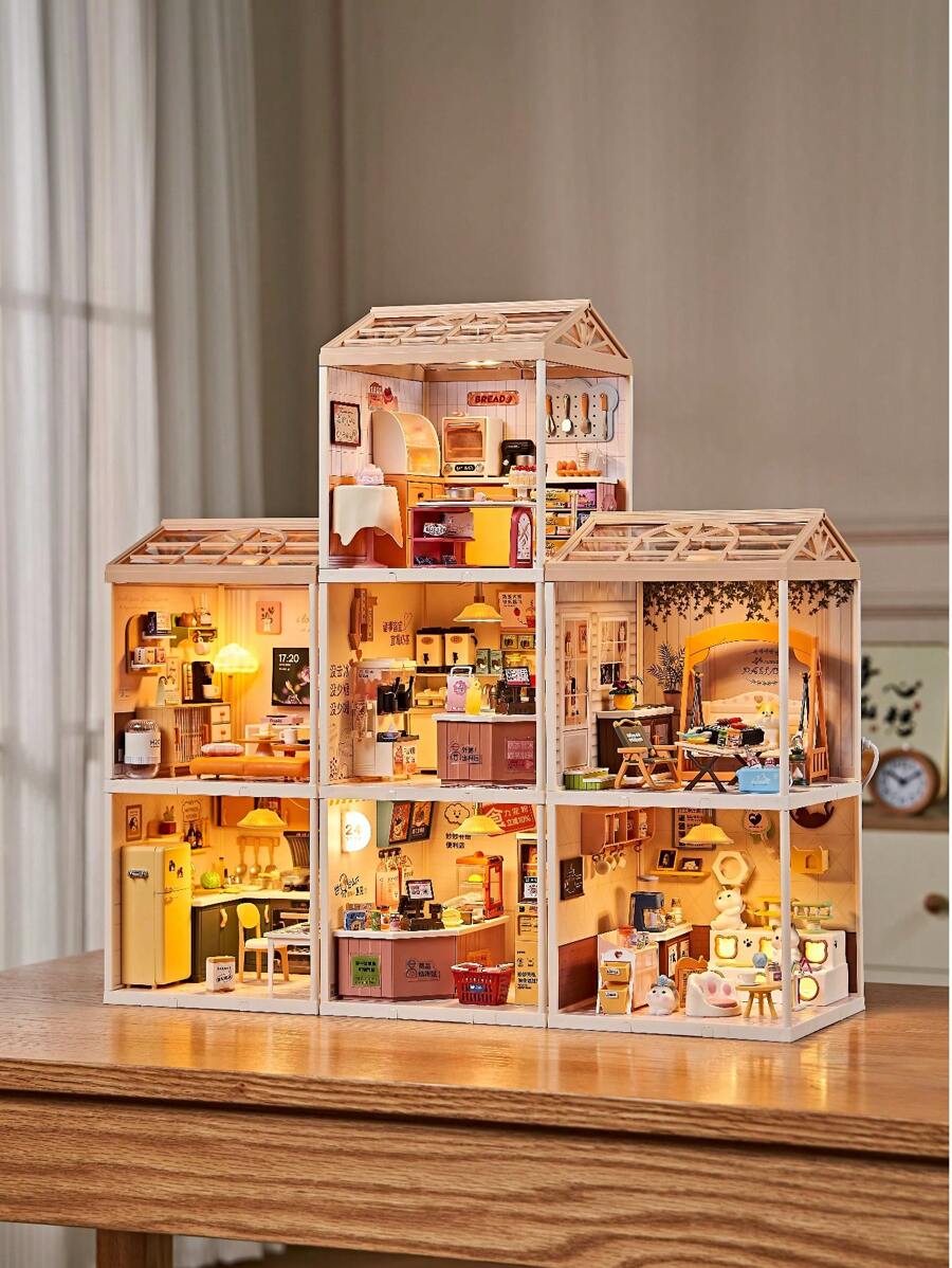 طقم منزل دمية مصغرة لل-DIY، مجموعة إنشاء مايكروسكوبي لمنزل الميك آب وتفاصيل الغرفة الداخلية بإضاءة LED، هواية وحرفة للبالغين هدايا فريدة للمراهقين