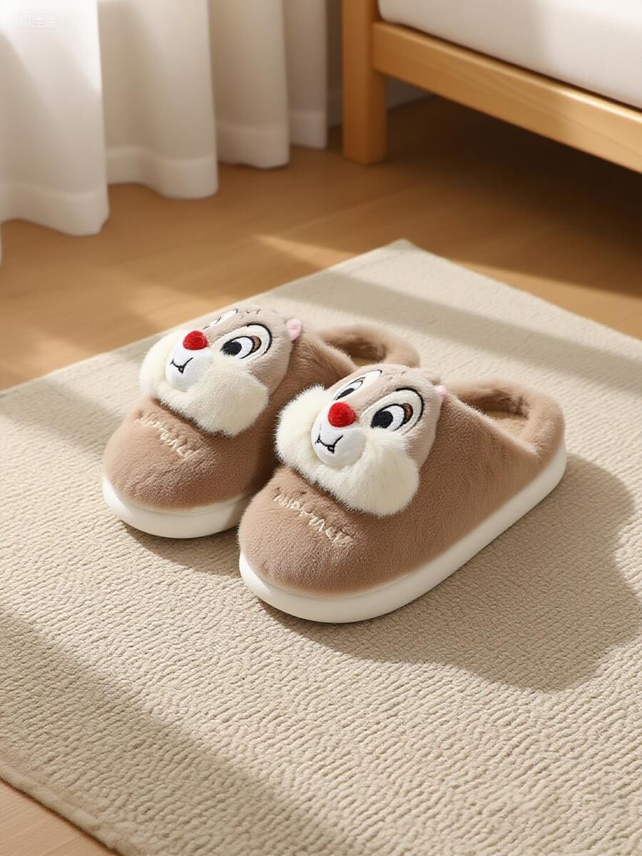 أحذية منزلية دافئة للشتاء مزينة بنقش كرتوني جذاب لشخصيات تشيب ودايل الرسمية من ديزني، للشباب