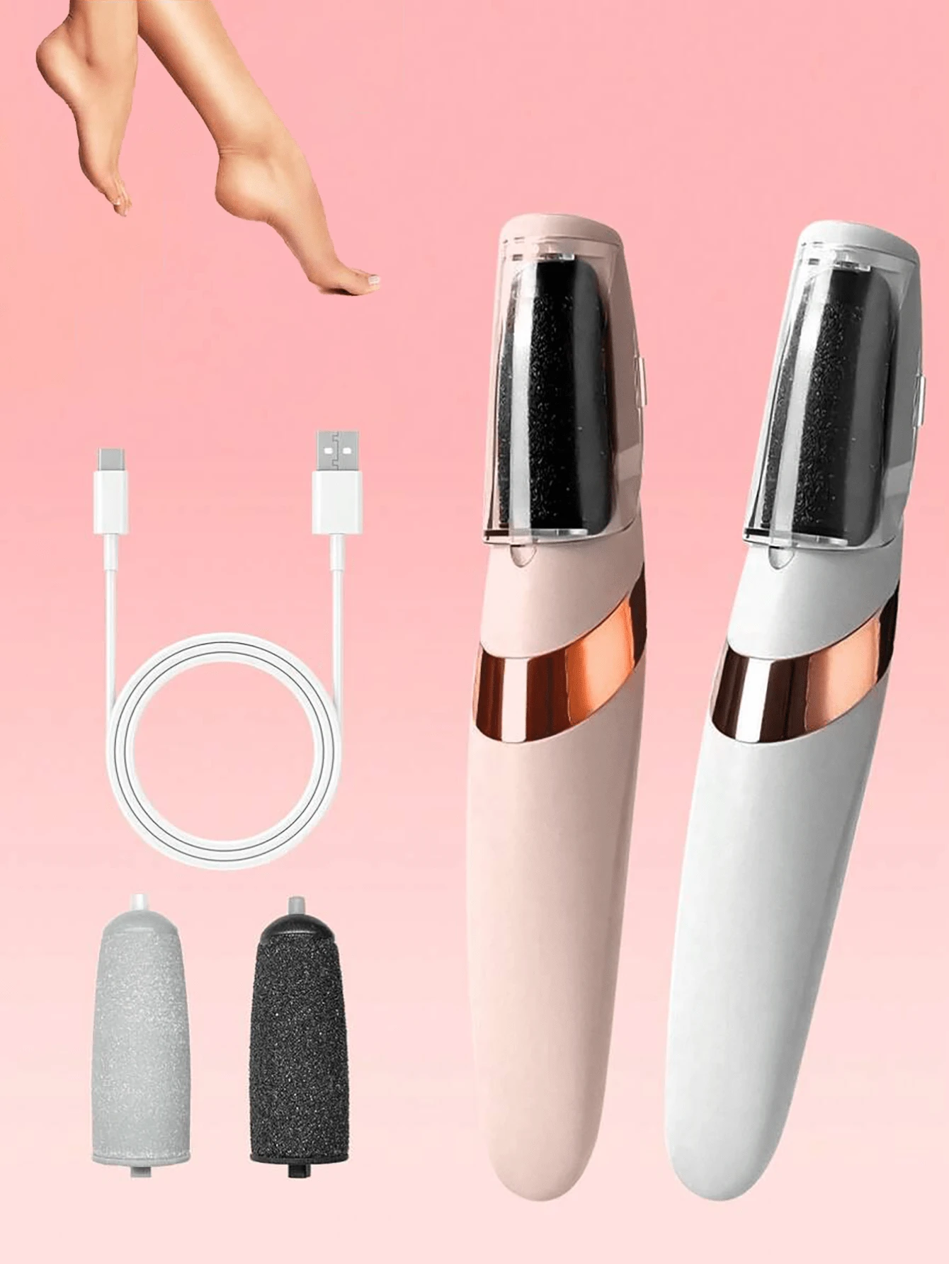 ملف قدم كهربائي، جهاز إزالة تصلب الجلد بالقدم قابل للشحن عبر USB مع سرعتين وبكرات قابلة للاستبدال وأضواء LED، أداة إزالة البشرة الصلبة احترافية لرعاية القدم للكعوب المتشققة والتصلب والجلد الميت، مناسب للرجال والنساء لإزالة الجلد الجاف والميت من القدم