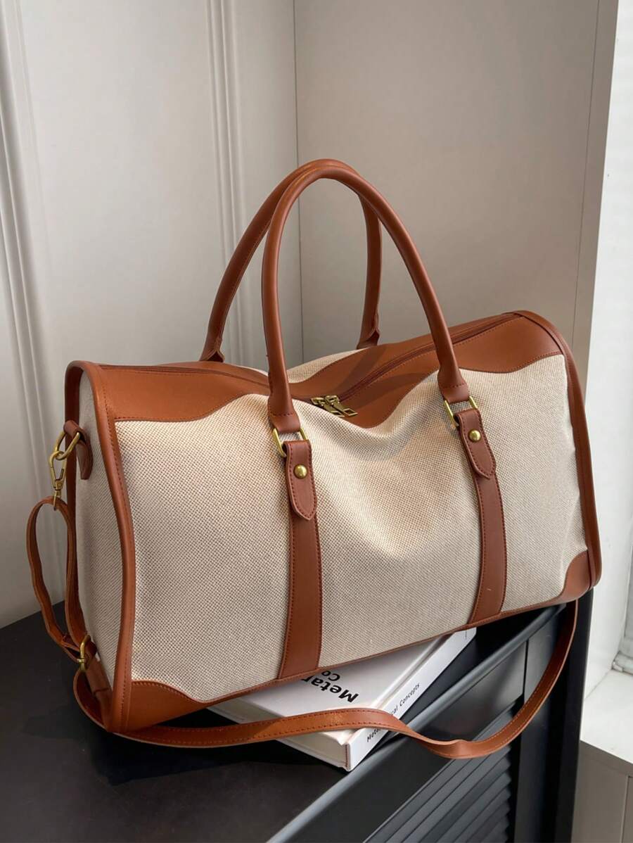 حقيبة سفر كبيرة السعة ذات لون مكتلب، مع إغلاق بسحاب، مناسبة للرحلات التجارية والسياحية وحقيبة المدرسة وملحقاتها