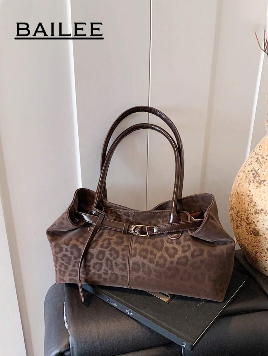 BAILEE حقيبة كتف مغناطيسية عصرية كبيرة السعة بتصميم Y2K Maillard Retro بألوان متناسقة مع نقشة جلد الفهد من جلد البولي يوريثان غير اللامع للنساء العاملات في مجال ذوي الياقات البيضاء، مثالية للجامعة والعمل والأعمال والتنقل والأنشطة الخارجية والسفر والنزهات والمكتب، مثالية للعمل والتسوق وحضور حفلات العشاء وفعاليات الموضة وإهداء الأصدقاء