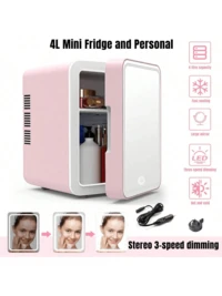 ثلاجة صغيرة 4 لتر مع مرآة وإضاءة LED قابلة للتعديل، تبريد مزدوج لتخزين المستحضرات التجميلية والأطعمة، ثلاجة صغيرة محمولة للاستخدام في غرفة النوم والمكتب والسيارة