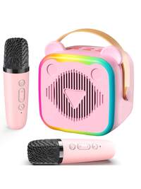 آلة كاريوكي صغيرة للمراهقين والبالغين - سماعة بلوتوث محمولة مع ميكروفونين لاسلكيين وأضواء LED، لعبة KTV مثالية للحفلات المنزلية، أفضل هدية عيد ميلاد وعيد الميلاد للأولاد والبنات