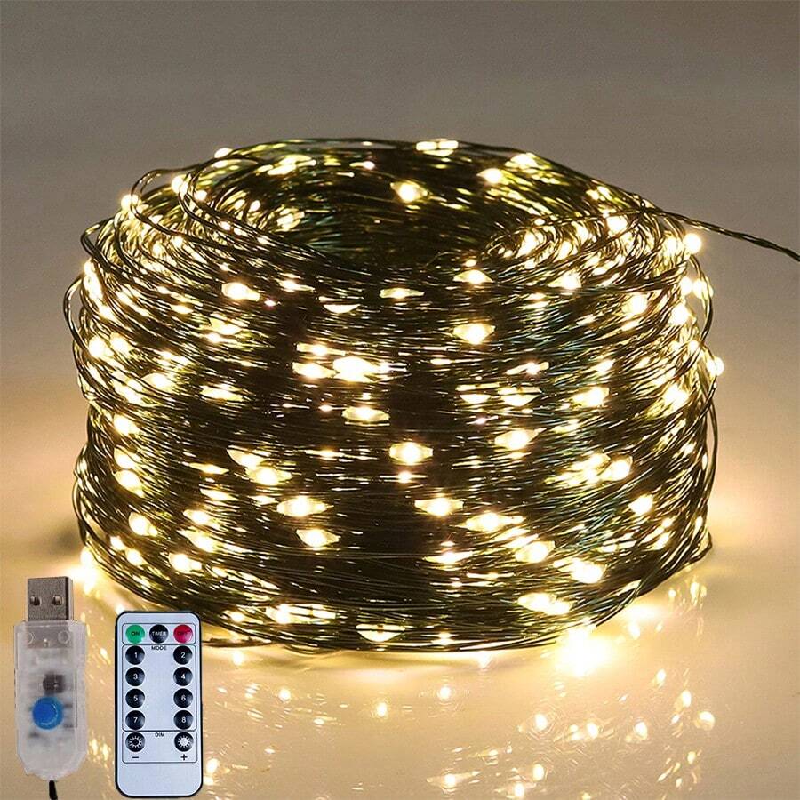 أضواء سلك النحاس LED، أضواء زينة شجرة عيد الميلاد بالتحكم عن بعد، أضواء فيري عيد الميلاد، إكليل نباتي أخضر مزين بأضواء نجمية، ديكورات عيد الميلاد، زينة هدايا شجرة عيد الميلاد، ديكور منزلي لعيد الشكر والزفاف والخريف والأعياد الميلاد والحفلات، ديكورات داخلية وخارجية للحديقة والعطلات والهالوين، ديكورات الحائط، إكسسوارات الهالوين