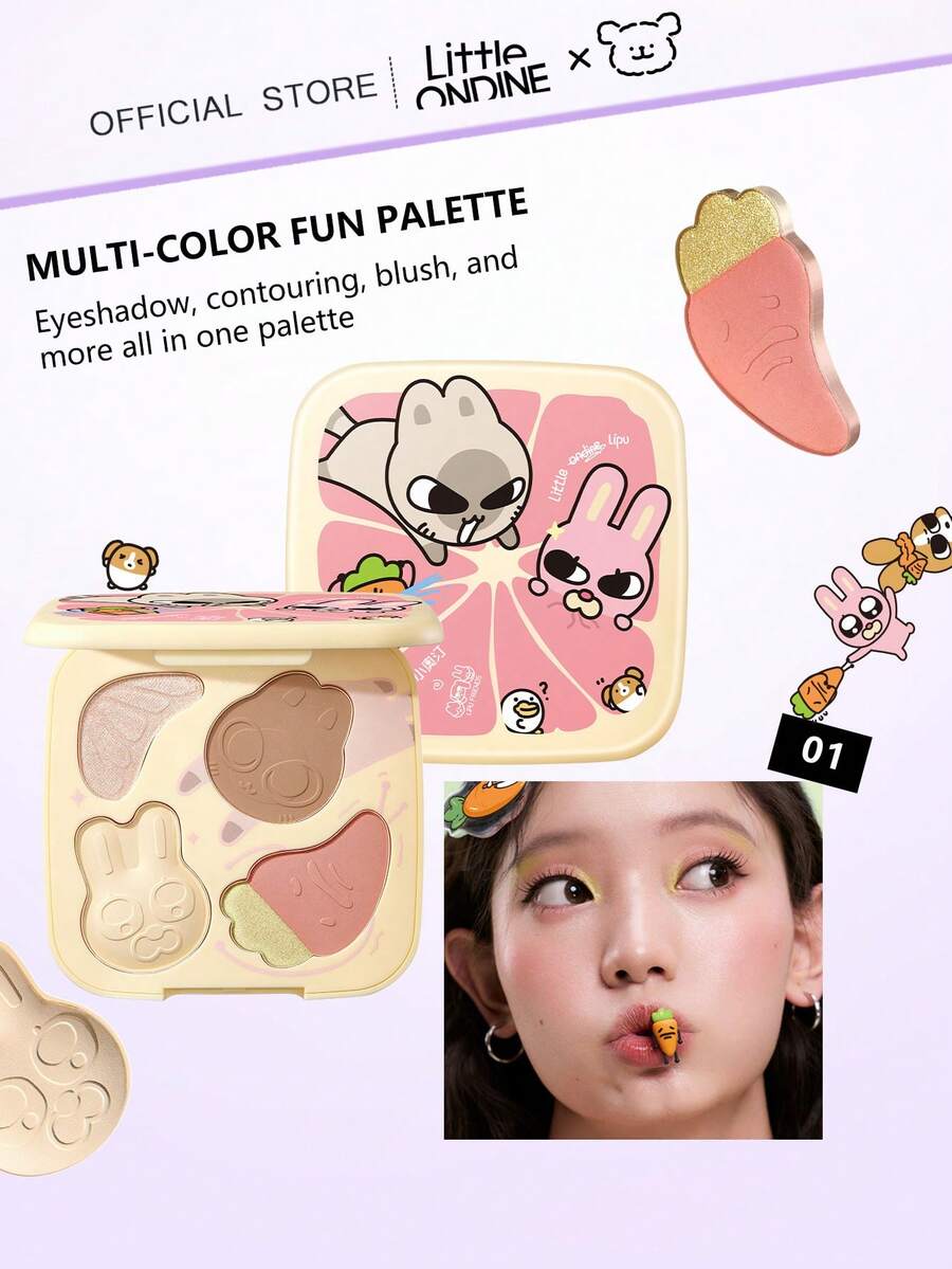 Little Ondine طقم مكياج متعدد الألوان 01 برتقالي، شديد الصبغة، مسحوق ناعم. للعيون والخدود والتبريز. يخلق مظهرًا حلوًا ونشيطًا. مقاوم للاستمرار، طقم مكياج شامل. هدية مثالية! 12 جرام / 0.42 أونصة
