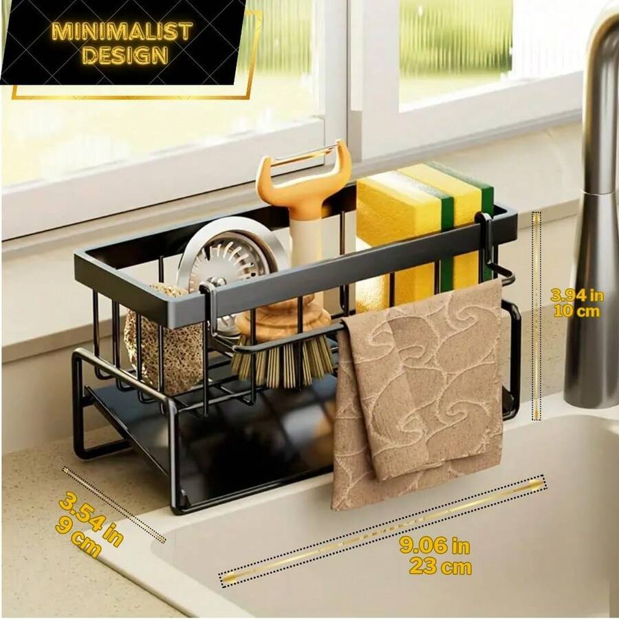 رف صرف مغسلة متعدد الوظائف، رف تخزين إسفنجة وقطعة قماش غسيل الأطباق، أرفف المطبخ, سلة أسلاك صرف المغسلة ، رف تخزين قطعة قماش غسيل الأطباق، رف من الصلب الكربوني المحسن. رف للشطف وتنظيف المغسلة بسلة سلك الصلب الكربوني