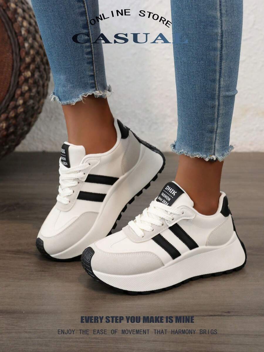 حذاء رياضي مسامي للإرتداء اليومي ذو كعب سميك ويضفي ارتفاع ، ألوان معقودة للطلاب موسم الصيف/الخريف 2025
