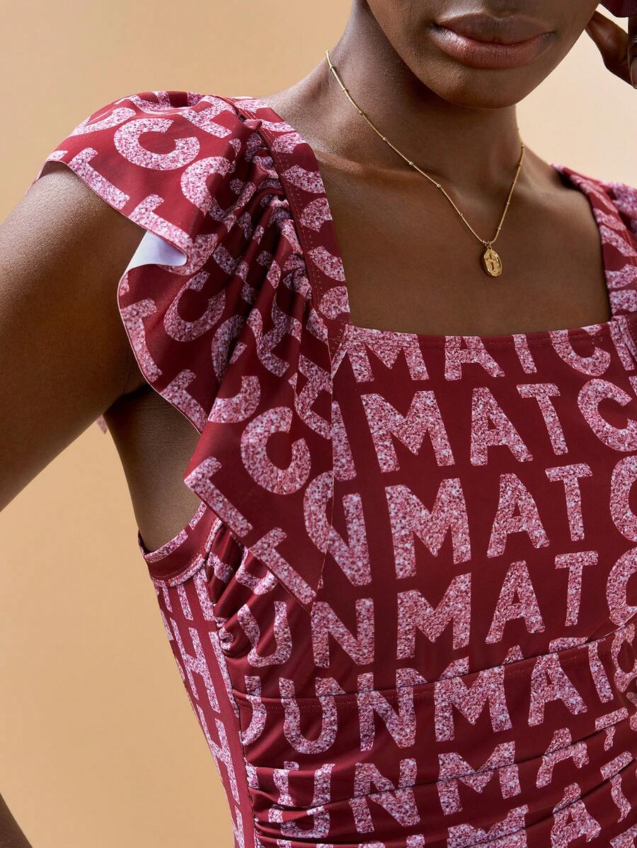 Zivah بدلة سباحة قطعة واحدة ذات أكمام مكشكشة أنيقة جديدة، ذات قاعدة حمراء مع طباعة حرفية، مناسبة للشاطئ والحمام والحفلات