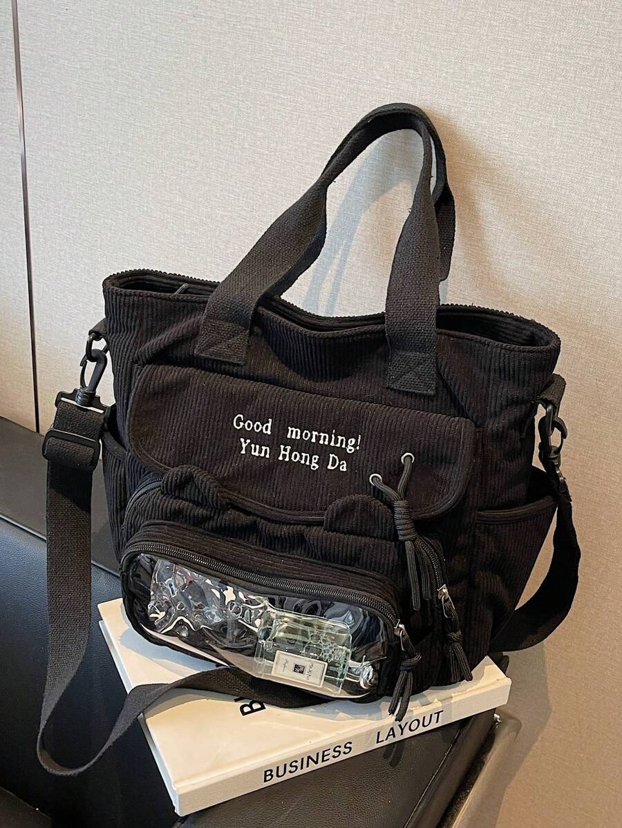 حقيبة كتف كبيرة السعة مزينة بالحروف الأولى، بتصميم جيب شفاف جديد، حقيبة مدرسية كورية متعددة الجيوب بأسلوب كوليج جديد، حقيبة كاجوال متعددة الوظائف للحمل عبر الجسم، حقيبة قماش مخملي متوسطة الحجم، حقيبة مدرسية بجيب شفاف من البي في سي لتخفيف الآلام، حقيبة مدرسية أدبية للمراهقين، حقيبة تسوق للطالبات، مناسبة للمراهقات وطالبات الجامعة، مثالية لحفظ الكتب والتسوق والتنقل والعودة للمدرسة وغيرها