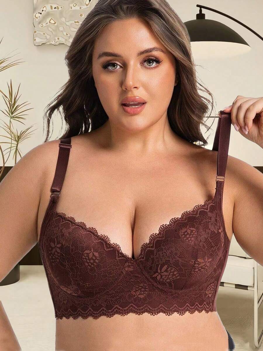 صدرية دانتيل كبيرة الحجم مع سلك داعم - تغطية كاملة ورفع الصدر، تصميم مطرز جذاب للأعلى بدون ظهر، صدرية يومية مضادة للانهيار لتي شيرت