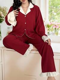 في ضلع محبوك طقم بيجامات مقاسات كبيرة